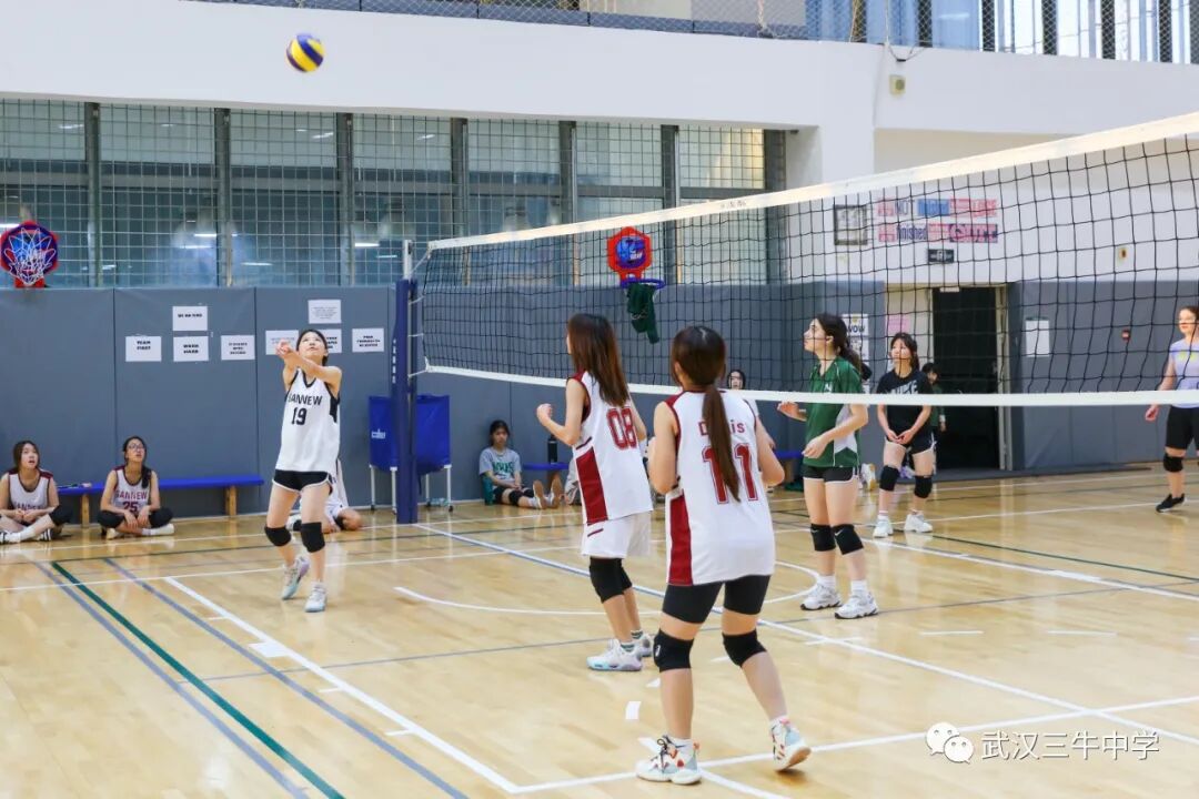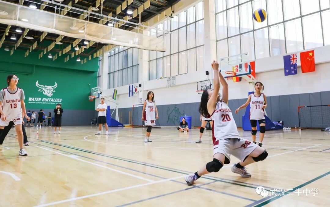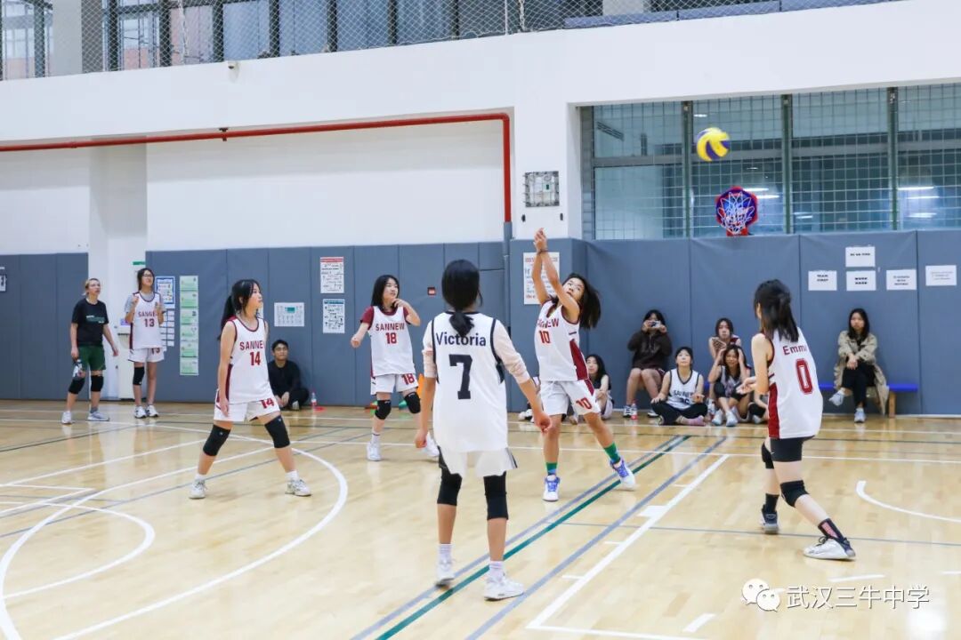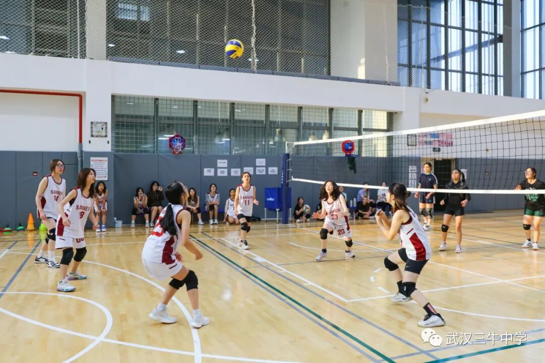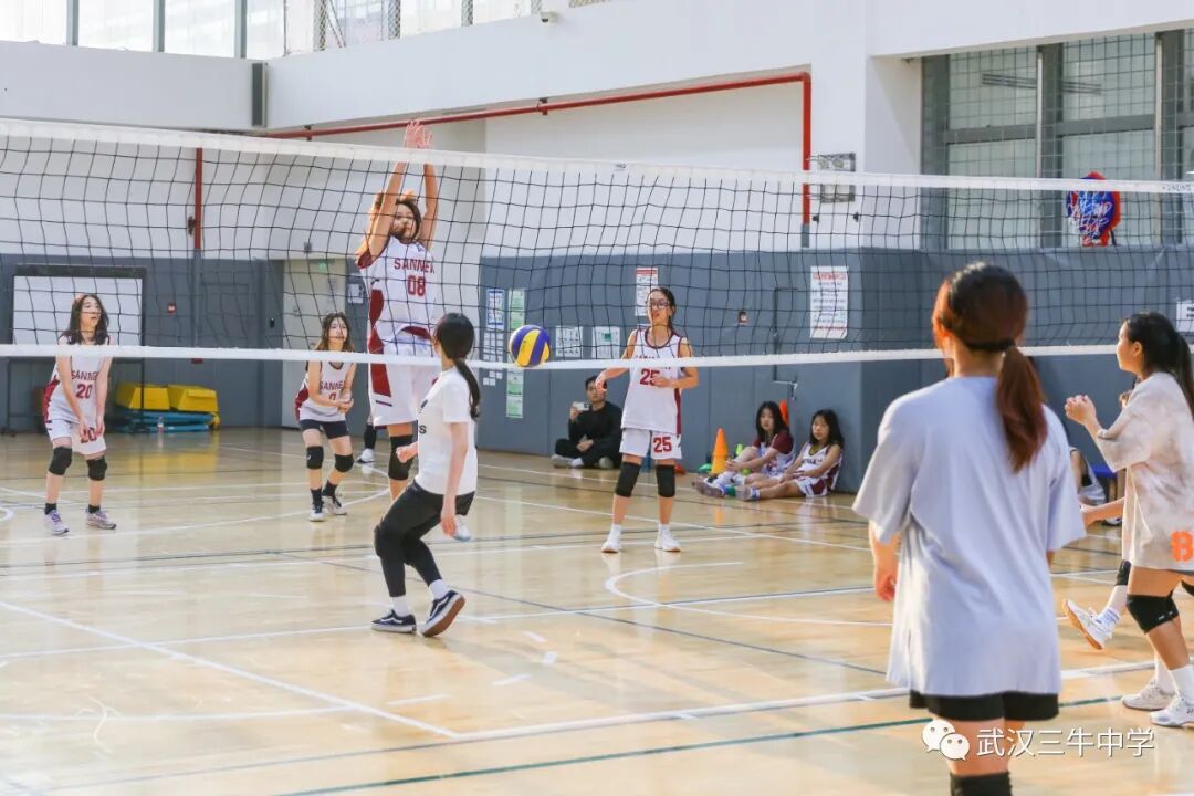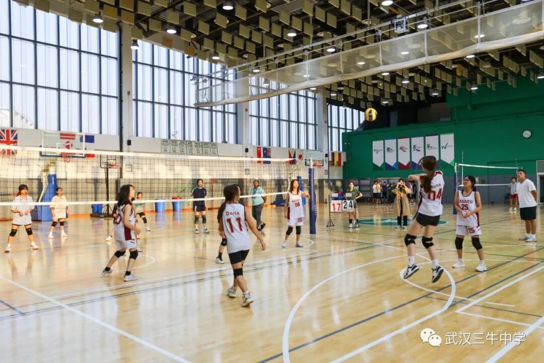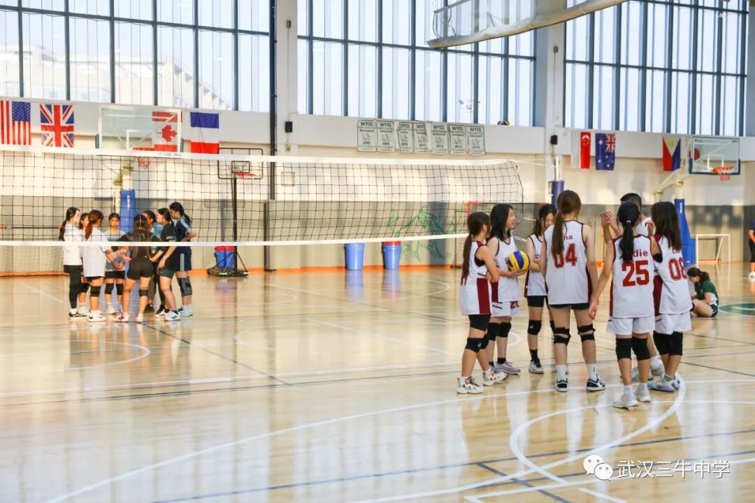 12名女生组成的排球队与武汉长江国际学校展开比赛