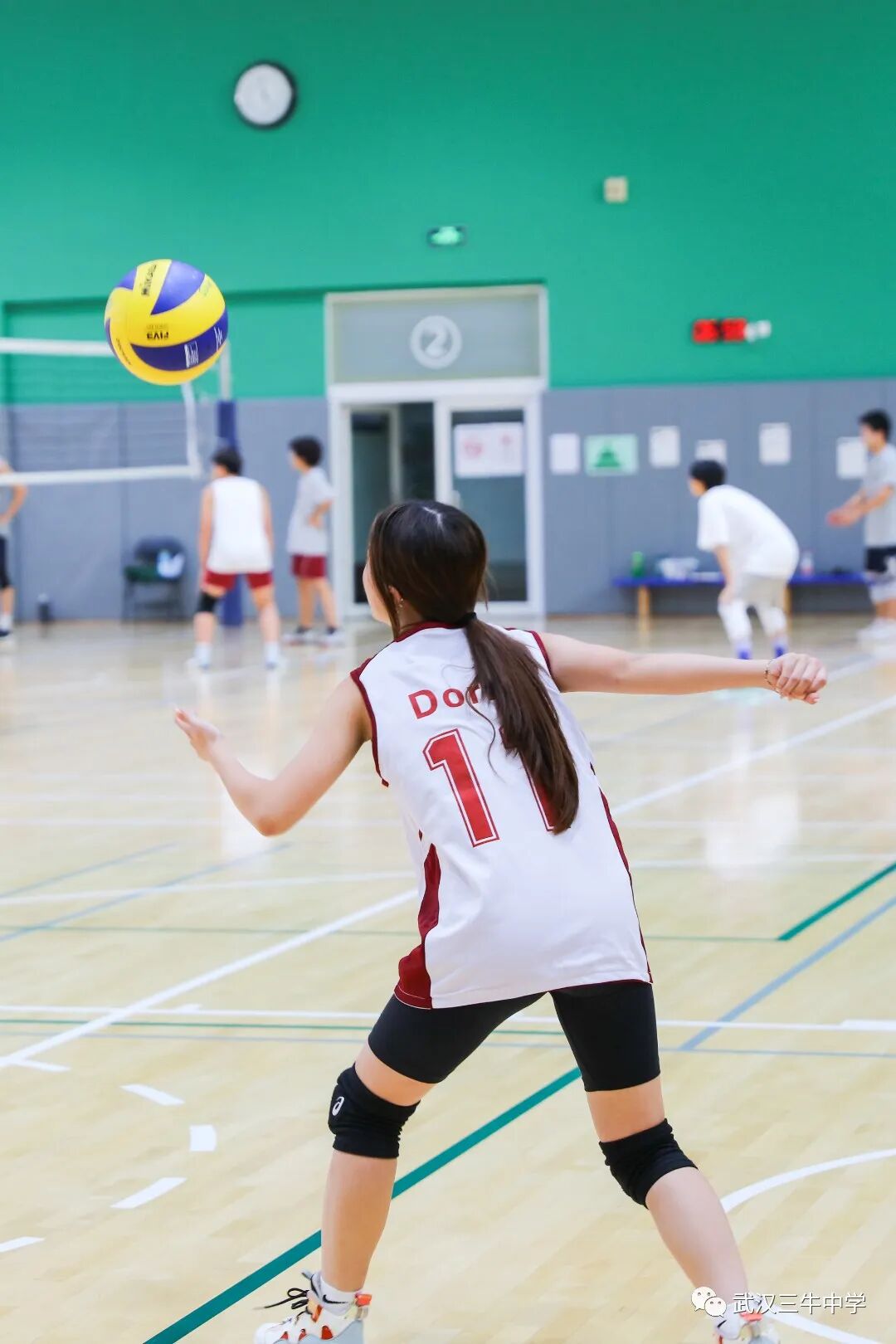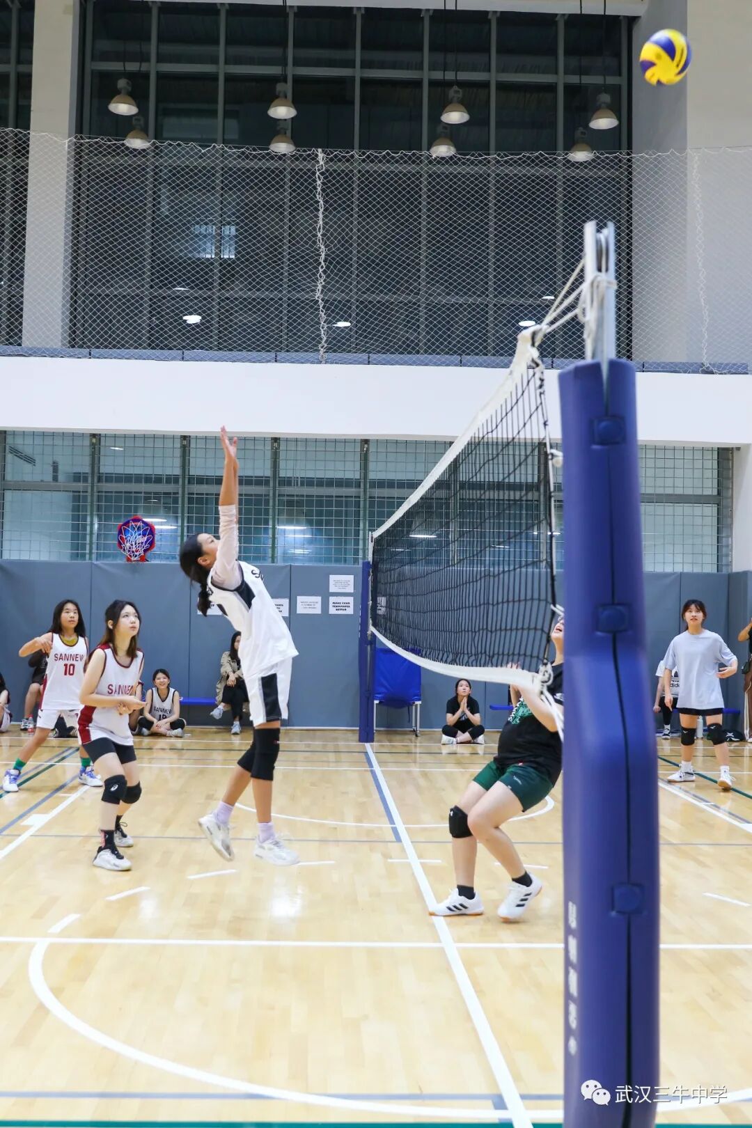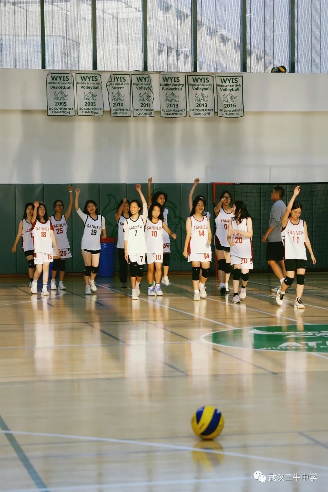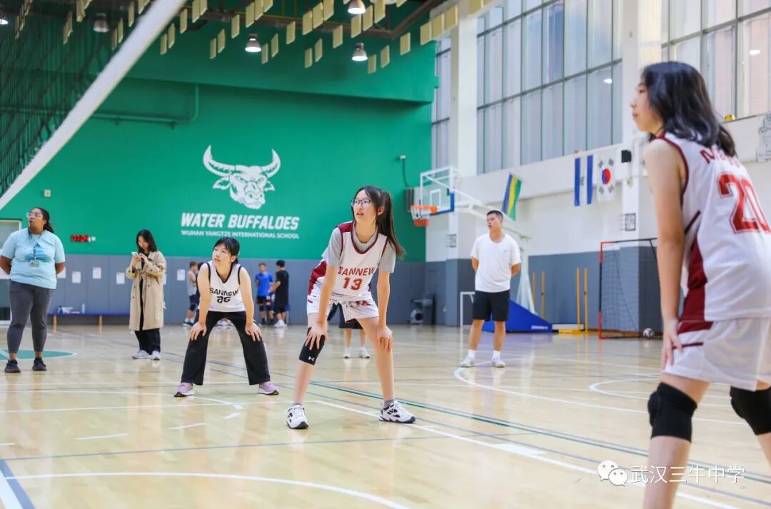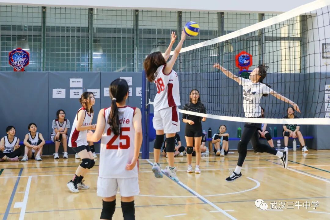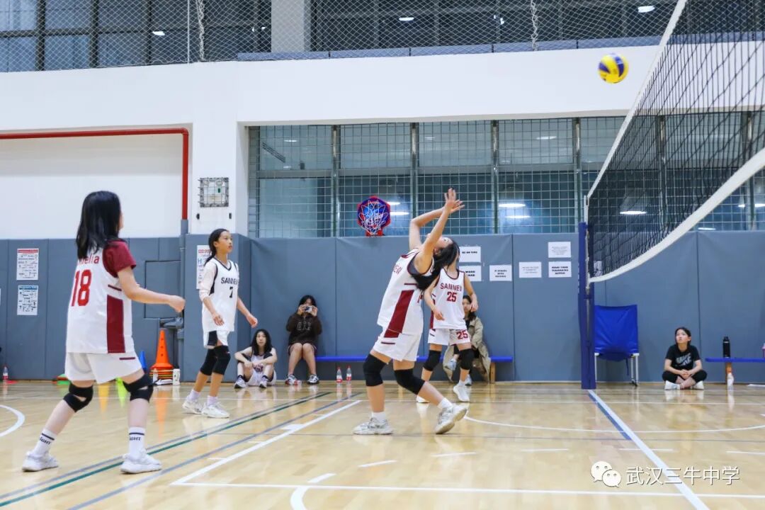 12名女生组成的排球队与武汉长江国际学校展开比赛