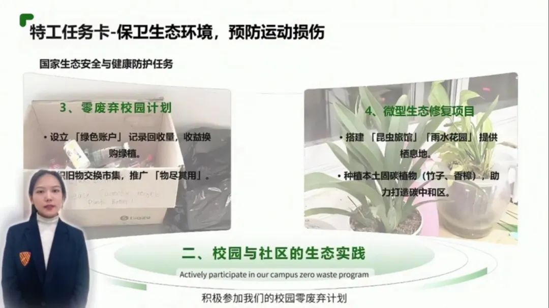 在此次微课评选活动 两位老师有机整合 体育&健康、生物学 通过环境污染案例分析 生态安全逻辑链构建和模拟训练实践等模块 构建生态保护+运动健康+国家安全 三位一体的课程体系