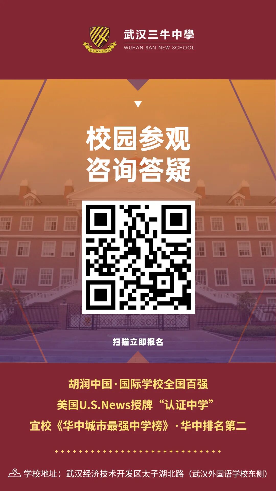 三牛教授AP课程的教师均由硕士、博士和海归组成,能力出众,经验丰富。 学生通过4门AP课+2门AP Capstone课,即可获得由美国大学理事会颁发的AP国际文凭,AP国际文凭受美国藤校及顶尖大学青睐,含金量极高。 近年来,三牛学子AP成绩年年攀升。 2023年,三牛学子共参加120场AP考试,98%以上的学生至少通过1门考试,其中5门学科通过率100%,AP物理C满分率100%。2022年,近200场AP考试,95%的学生至少通过了一门AP科目,通过率(3分及3分以上)高达85%;2021年,在21门AP科目中,近7成三牛考生获得4分成绩。 四、标化课程(初、高中选修) 申请海外大学,标化考试成绩是十分重要的递交材料,也是我校提供给学生的三大个性化国际课程的重要基石。 ![]() ![]() 1 分层教学 根据不同学生的学习能力、英语能力、数学能力,部分课程采取分层教学,并依照学生实时学习成果,动态调整学生所属班型(每班人数不超过25人)。 2 选课走班 不同于其他学校学生固定在同一教室上不同科目的课,三牛学生可以基于自己的需求和兴趣,前往不同的学科教室上课,真正做到个性化培养。 3 导师培养 构建「升学导师+学术导师+标化导师」三位一体导师制,从入学到升学,从校内考试到标化考试,全方位指导、帮助每一位学生。 4 个性化辅导 根据部分学生的个体需求,实施个性化辅导。例如9年级同学想上10年级课程,并且,TA的能力达到了10年级学生的学术能力,我们就会重新匹配调整该名同学的课表;基础薄弱同学,我们也会为TA专门提供学术补习。 三牛的校际活动和社团活动,是同学们课堂教学的补充和延伸,也给学生更多展示自己,发挥自己的自由成长空间。 1 社团时间 周一到周四,每天60分钟的社团时间,既丰富学生课外生活,又挖掘学生兴趣特长,三牛现拥有兴趣类、专业类、运动类、艺术类、社会实践类、学习类、学生自创类七大类社团。 关键词:健身社、足球社、戏剧社、篮球社、舞蹈社、乐队社…… ![]() ![]() ![]() ![]() 三牛鼓励学生自主策划活动,对自己的事务高度自治,每次大型活动的举办,都是发挥学生团队精神、创新精神和领导力的最佳时机。 关键词:万圣狂欢夜、感恩百乐宴、圣诞节派对、电竞比赛、趣味运动会…… ![]() ![]() ![]() ![]() 3 学科活动 三牛从学科不同特点出发,组织学生参加校内外学术活动,激励学生对学科的兴趣,培养个人综合能力。 关键词:篮球/足球联赛、英语演讲比赛、服饰文化节、科技展、艺术展参观…… ![]() ![]() ![]() ![]() 4 学院活动 三牛打破年级、年龄界限,击溃性别、关系壁垒,将全体学生分派至四大学院,每周大家一起讨论方案,一起参加活动,彼此支持、互相协作。 关键词:躲避球大赛、Kahoot知识竞赛、橄榄球比赛、拔河比赛、水枪大战、飞盘…… ![]() ![]() ![]() ![]() 5 社会实践 三牛支持学生参与或发起全球范围内的各类公益活动、社会实践活动、培养他们的社会责任感,加强他们与社会的联结,开阔眼界,做出贡献。 关键词:社区公益行、留守儿童关爱、湖北广电实习、夏令营、智能汽车产业园参观…… ![]() ![]() ![]() ![]() 6 学术竞赛 三牛为初、高中年级同学提供种类丰富的全球性学科竞技平台,竞赛主办国涵盖中、美、英、加、澳,学科种类涉及数、理、生、化、英、科学、人文等。 关键词:USAD美国学术十项全能、NSDA全美演讲与辩论联赛、IGEM国际基因工程机器大赛…… ![]() ![]() ![]() ![]() 创校七年来,武汉三牛中美中学在实践中不断摸索、创新,设计出符合当下学生学术兴趣需求和成长心理需求的教育模式。 学校通过综合能力的培养,让学生能顺利接轨海外大学本科教育,同时应对未来现实社会挑战,这趟旅程没有终点,为了学生发展的教育使命,我们要奋斗的道路还很漫长。