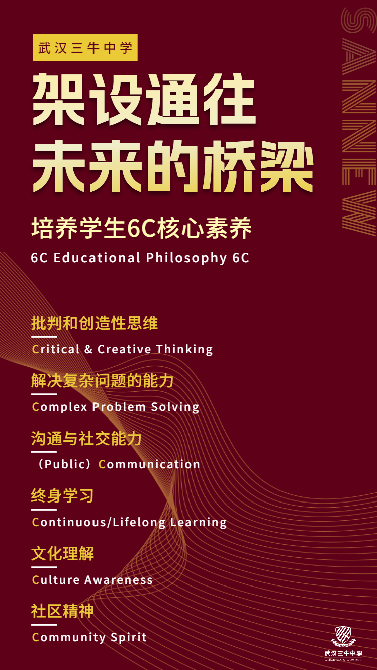 SAN NEW OPEN DAY 2024/5/5武汉三牛中学(原武汉三牛中美中学)系华中地区第一所纯美式寄宿中学,创建于2016年。学校提供7至12年级完全中学学历教育,突出「小班教学+分层教学+选课走班+双语教学+全英文教学」教学模式,构建「升学导师+学术导师+标化导师」三位一体导师制,全方位助力学生进入海外理想大学深造。
