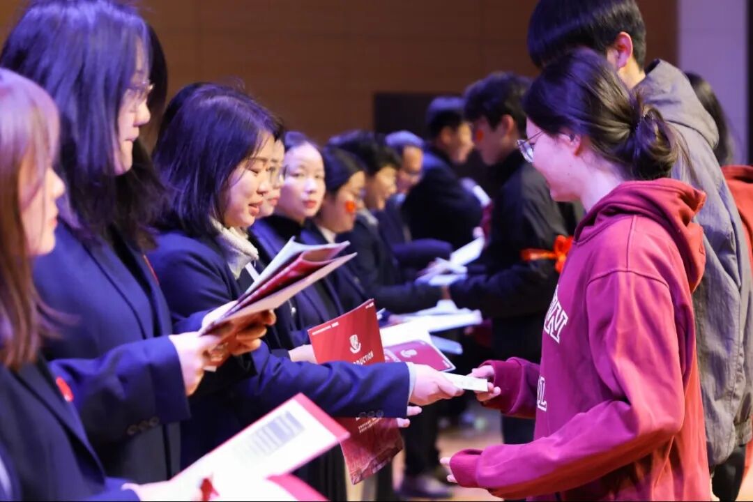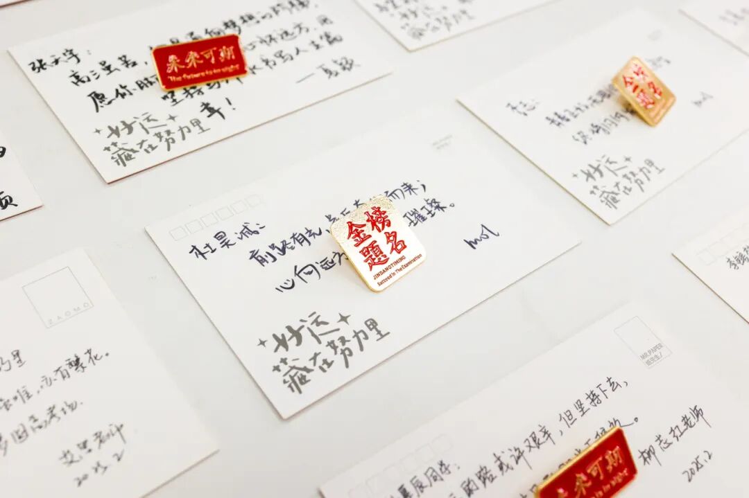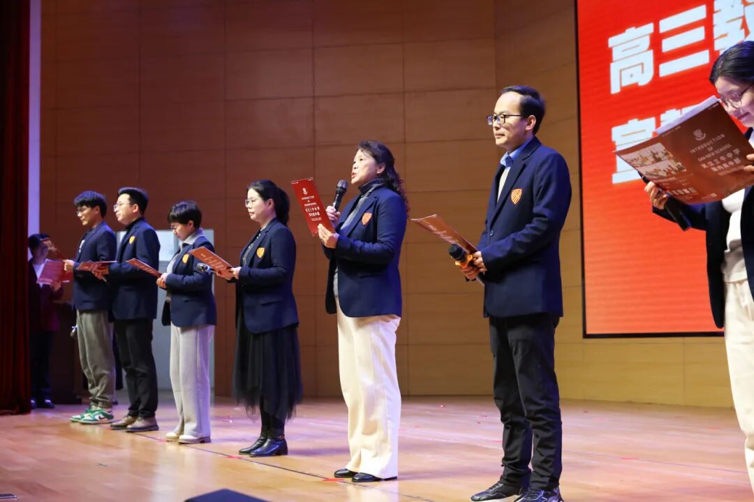 语文组 那些为了理想全力以赴的执着 那些在困境中依然怀抱希望的勇气 那些与同伴并肩作战的时刻 才是这段旅程馈赠给你们最珍贵的礼物 数学组 遇到难题,别退缩 试着从不同角度去思考 每一次思维的碰撞都是突破的契机 愿你们在百日冲刺中 以笔为剑,披荆斩棘 成绩节节攀升,高考考场旗开得胜 英语组 Challenge yourself Challenge laziness Challenge weakness Challenge bad habits We wish you all the best 日语组 让核心2000词烂熟于心 将文法编织成网 让各类变形运用自如 你们潜力无限 君たちはできる 絶対できる 文综组 文综战场,赢在格局 用历史的眼光审视变迁 用地理的思维丈量世界 用政治的智慧回应时代 百日虽短,足以改写乾坤 2025,文综必胜,顶峰相见 理综组 题海无涯勤作舟,基因图谱绘峥嵘 师生共济同舟渡,淬火成锋贯长虹 且看锋芒出鞘日,敢教日月换新虹 分秒必争雷霆动,登顶笑傲九霄重 体育组 身为三牛体育人 我将携手三牛体育生们冲在最前面 带领高三师生向高考发起最后的决战 相信自己,我们定能创造奇迹 书写属于我们的辉煌篇章 ✒ 高三教师为学生赠予贺卡及徽章