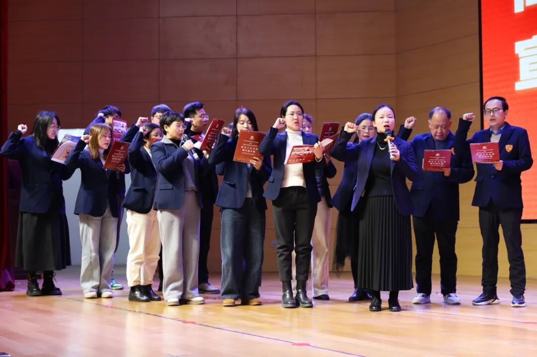 在这神圣的时刻,面对学生,面对家长,我庄严宣誓:忠于职守,精诚团结;言传身教,以身作则。脚踏实地,刻苦钻研;甘于奉献,燃烧激情。 我们为你们保驾护航,我们为你们摇旗呐喊。我们与你们同甘共苦,我们与你们风雨同舟。